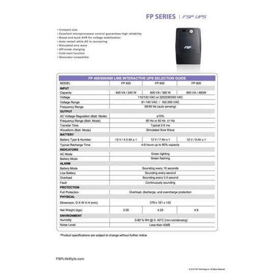 Fortron UPS FSP FP 800, 800 VA, interaktívna linka