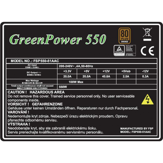 Napájací zdroj Fortron 550W GreenPower 550-51AAC,80+ Bronze