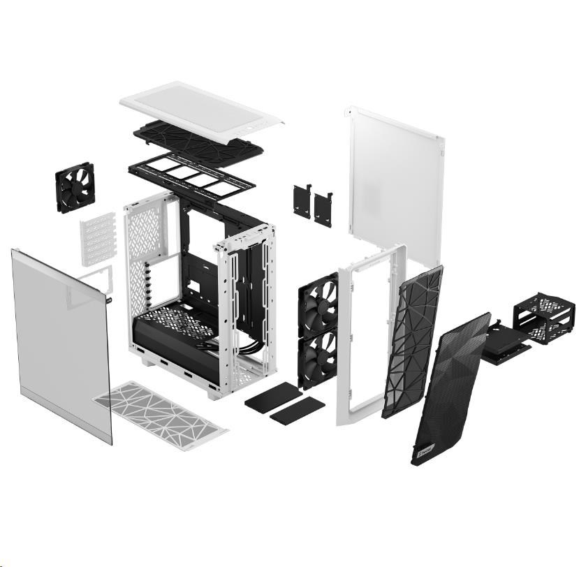 FRACTAL DESIGN skříň Meshify 2 Compact White TG Clear Tint, USB 3.1 Type-C, 2x USB 3.0, bez zdroje, mATX