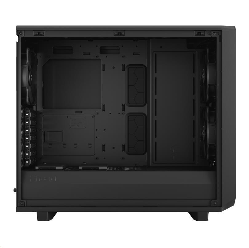 The Meshify 2 Lite is a high-performance case with a bold, stealth-inspired aesthetic. Its striking exterior features bolt-free, flush tempered glass, a front with a hinged, iconic mesh panel, and a spacious interior that supports multi-radiator setups.