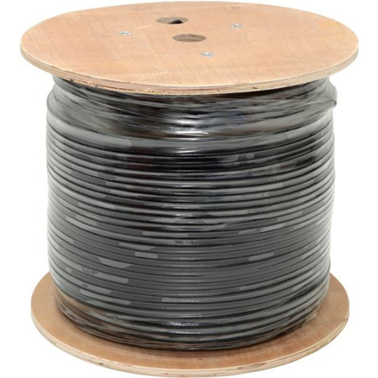 FTP kabel LYNX Cat5E, drát, dvojitý venkovní PE+PVC, černý, 305m cívka