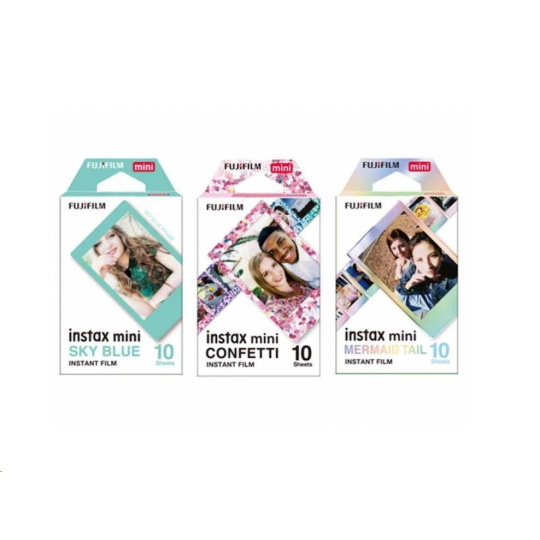 Exkluzívne balenie filmov Instax Mini. Každý zo štyroch balíčkov nesie jedinečný dizajn rámčeka, čo vám dáva možnosť vytvoriť fotografie, ktoré nielen zachytávajú okamihy, ale aj rozprávajú svoj vlastný príbeh plný kreativity a osobného výrazu. Užívajte si okamžité tlače s Instax Mini a urobte svoje spomienky ešte výnimočnejšími. Balenie zahŕňa tri odlišné dizajny okrajov: CONFETTI pre veselé okamihy, SKY BLUE, ak chcete vyjadriť pozitívnu náladu a harmóniu, a dúhový okraj MERMAID TAIL pre nádych kúzla a fantázie.