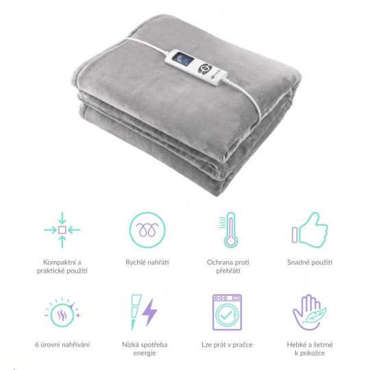 Čo môže byť lepšie, než sa po dlhom náročnom dni zachumlať do jemnej prikrývky, ktorá navyše pekne hreje? HeatBlanket 1813 vám poskytne tepelný komfort presne podľa vašich potrieb – teplotu si totiž môžete zvoliť zo šiestich úrovní. Deka vám pomôže nielen s vašou zimomrivosťou, ale môže pomôcť aj s odstránením bolesti. Teplo totiž pôsobí pozitívne na uvoľnenie svalov a môže pomôcť pri bolestiach chrbta, pri natiahnutí po športovaní a ďalších problémoch pohybového aparátu. Povrch je vyrobený z microfleecu, ktorý je veľmi príjemný na dotyk. Bezpečnosť je u tejto deky na prvom mieste – je vybavená časovačom a funkciou automatického vypnutia, takže sa nemusíte baliť prehriatia či dokonca popálenia. HeatBlanket 1813 je taktiež šetrná k vašej peňaženke – zohrieva vás mnohonásobne lacnejšie, než vyhrievanie miestnosti priamotopom.