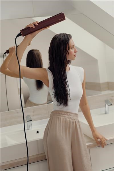 Miesto tradičných horkých tanierov pracuje s presne riadeným prúdom teplého a studeného vzduchu. Vďaka tomu môžete vlasy rovnať ihneď po umytí – rýchlo, pohodlne a bez rizika poškodenia.