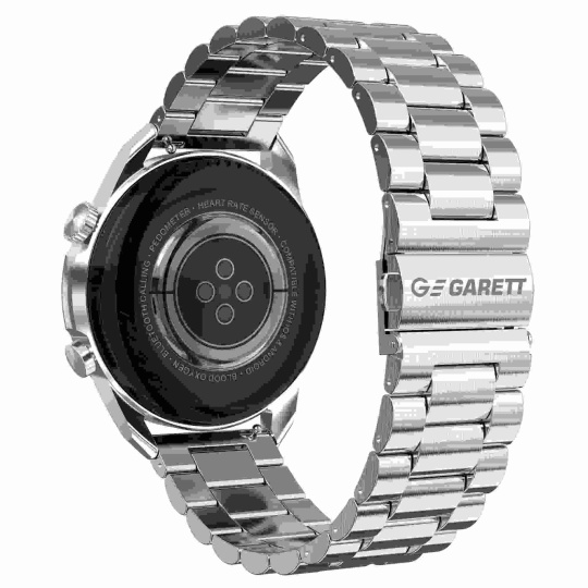 - Sada obsahuje: inteligentné hodinky Garett, silikónový remienok, nabíjací kábel USB (bez zástrčky do zásuvky), príručku QSG
