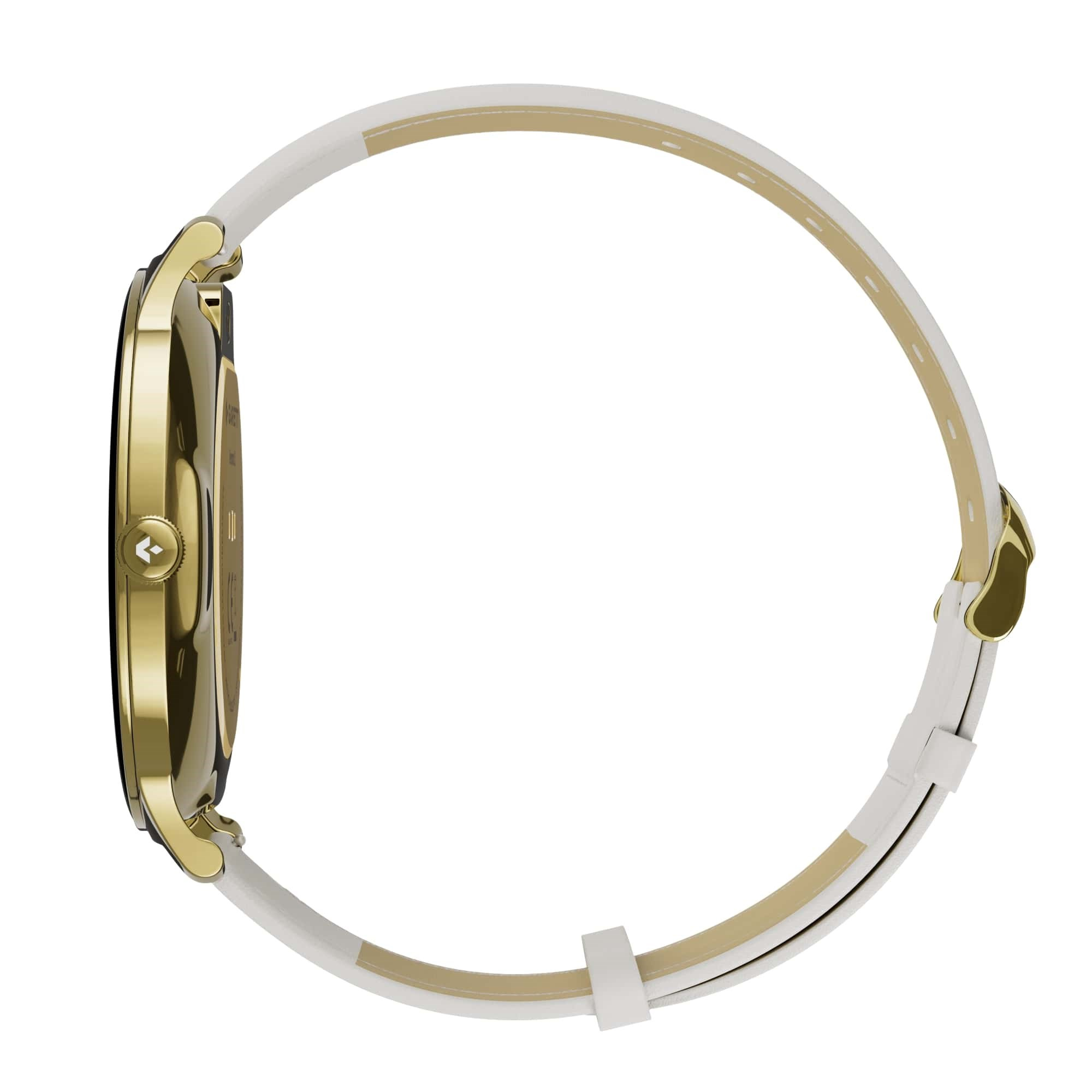Ultra tenké puzdro hodiniek so šírkou len 7,5 mm bolo navrhnuté s dôrazom na celodenné pohodlie aj vzhľad. Vďaka tenkému profilu sadnú hodinky výborne na zápästie. Praktickým doplnkom je otočné funkčné tlačidlo, ktoré umožňuje jednoduché ovládanie bez nutnosti dotyku displeja.