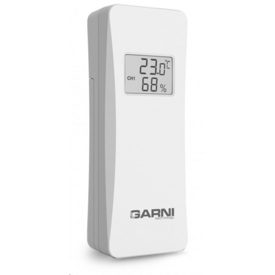 Náhradné bezdrôtové čidlo na meranie teploty a relatívnej vlhkosti, určené pre meteorologickú stanicu GARNI 502 vlhkosti odolné displej o rozmeroch 25 x 12 mm veľkosť číslic na displeji: teplota 7 mm a relatívna vlhkosť 6 mm meranie teploty a relatívnej vlhkosti 3 kanály maximálny RF výkon 10 dBm (10 mW) možnosť položiť alebo zavesiť farba biela