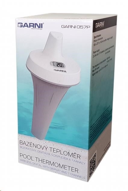 Sedmikanálové bazénové bezdrôtové čidlo na meranie teploty, určené pre meteostanicu GARNI 2055 Arcus, GARNI 1055 Arcus (s firmware 1.05 a novším), GARNI 975, GARNI 1025 Arcus a chytrý digitálny teplomer s vlhkomerom GARNI 419T. Dôrazne neodporúčame použitie v mraze. vodotesné, stupeň krytia IPX7 meranie teploty displej 24 x 12 mm 7 kanálov farba biela s šedou