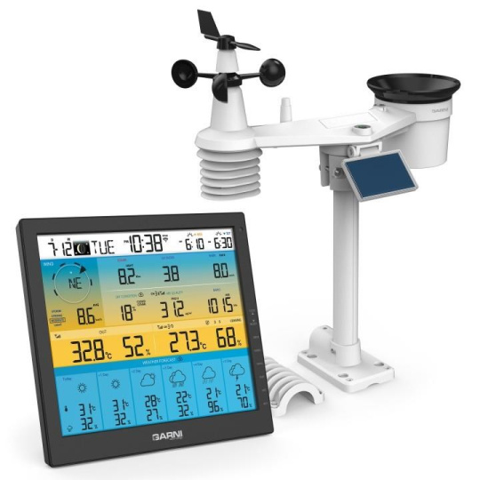 Integrovaný bezdrôtový senzor 7-v-1 GARNI 7INT meria vonkajšiu teplotu a relatívnu vlhkosť, rýchlosť a smer vetra, dažďové zrážky, UV index a slnečné žiarenie, a dáta sú odosielané do hlavnej jednotky až do vzdialenosti 150 m (na voľnom priestranstve). Napájanie zabezpečuje nabíjacia batéria, ktorá je nabíjaná pomocou zabudovaného solárneho panelu. Senzory sú kompletne zmontované a kalibrované tak, aby bola inštalácia čo najjednoduchšia pre vás.
