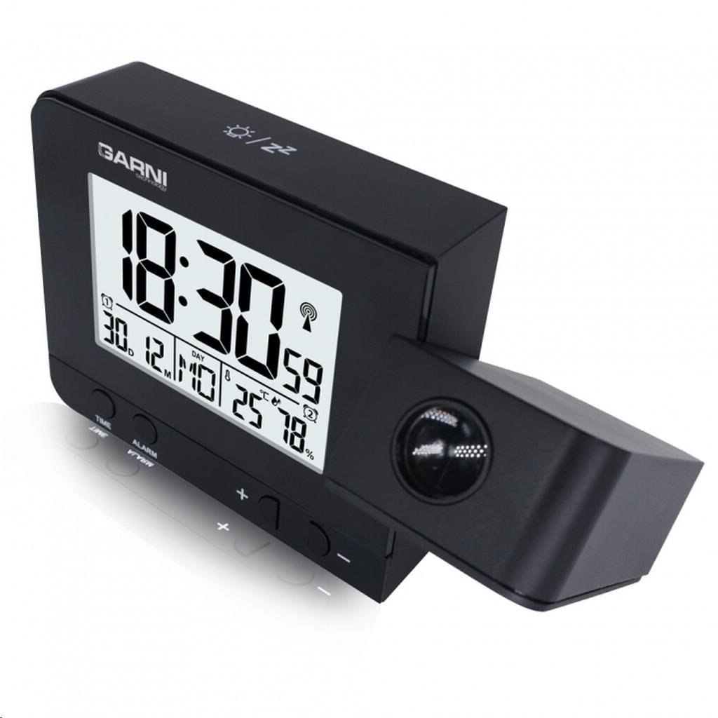 Digitálny budík s projekciou času a vnútornej teploty s LCD displejom, časom riadeným rádiovým signálom DCF-77 a meraním vnútornej teploty a relatívnej vlhkosti LCD displej o rozmere 63 x 42 mm s možnosťou stálého osvetlenia pri napájaní sieťovým adaptérom, alebo krátkodobým osvetlením na 8 s pri napájaní batériami 3 stupne jasu osvetlenia displeja, možnosť vypnutia osvetlenia displeja (pri napájaní sieťovým adaptérom) veľkosť číslic na displeji – čas 25 mm, dátum, skratka názvu dňa, vnútorná teplota a rel. vlhkosť 8,5 mm čas a dátum riadené signálom DCF-77 s možnosťou manuálneho nastavenia ikona príjmu signálu DCF-77 skratka názvu dňa 12-hodinový alebo 24-hodinový formát zobrazenia času možnosť nastavenia časového pásma od -12 do +12 hodín budík s 2 budícími časmi s funkciou opakovaného bdenia (Snooze) po 5 minútach budící signál - 10 sekúnd 1 pípnutie za sekundu, 10 sekúnd 2 pípnutia za sekundu, 10 sekúnd 4 pípnutia za sekundu a potom stály pípací zvuk projekcia času a vnútornej teploty s možnosťou otočenia obrazu o 180°, možnosť sklopenia tubusu projektora o 90° dopredu a dozadu farba projekcie červená stále projekcie pri napájaní sieťovým adaptérom s možnosťou vypnutia zobrazenie hodnôt vnútornej teploty a relatívnej vlhkosti zobrazenie teploty vo °C, alebo °F USB port na nabíjanie mobilných zariadení (len pri napájaní hlavnej jednotky sieťovým adaptérom), maximálny nabíjací prúd 1 000 mA napájanie sieťovým adaptérom, alebo batériami možnosť postavenia farba čierna Obsah balenia: 1 x digitálny budík GARNI 140 1 x sieťový adaptér český, slovenský, nemecký, anglický, taliansky, poľský a maďarský návod
