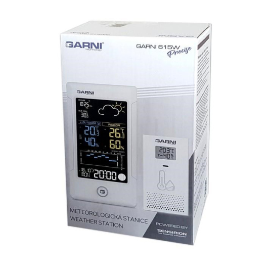Presná meteorologická stanica s inverzným farebným VA displejom s časom a dátumom riadenými rádiovým signálom DCF-77, budíkom, meraním vnútorného teploty, relatívnej vlhkosti, barometrického tlaku a bezdrôtovým čidlom na meranie vonkajšej teploty a relatívnej vlhkosti. Na dosiahnutie vysokej presnosti merania teploty a relatívnej vlhkosti sa používajú špičkové senzory švajčiarskej značky SENSIRION