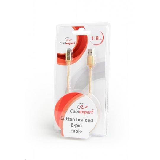 GEMBIRD CABLEXPERT USB 2.0 Nabíjací a synchronizačný kábel Lightning (IP5 a vyšší), opletený, 1,8 m, zlatý, blister