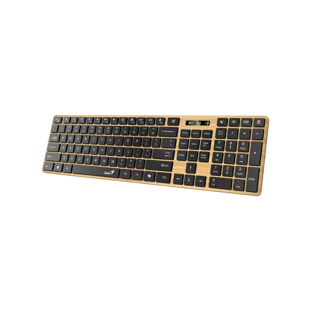 Genius SlimStar 7250BT predstavuje modernú bezdrôtovú klávesnicu s elegantným dizajnom inšpirovaným severným borovicovým drevom. Ponúka duálne pripojenie prostredníctvom Bluetooth 5.0 alebo 2,4GHz bezdrôtovej technológie s dosahom až 10 metrov. Klávesnica je ideálna pre širokú škálu zariadení vrátane stolových počítačov, notebookov, mobilných telefónov, tabletov aj inteligentných televízorov.