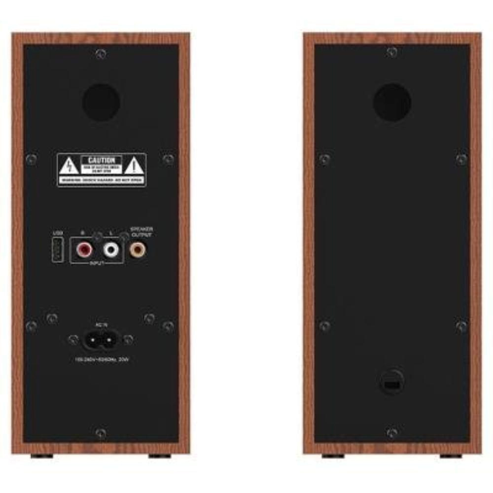 Set reproduktorov v konfigurácii 2.0 s celkovým výkonom 20 W. Vyrobené zo dreva pre dosiahnutie toho najlepšieho zvuku s plnými basmi aj jasnými výškami. Pripojenie k počítaču, notebooku či chytrému telefónu je jednoduché cez audio vstup, alebo bezdrôtovo pomocou Bluetooth. K dispozícii je tiež výstup na slúchadlá a USB vstup. Ovládanie hlasitosti a tónov je umiestnené priamo na reproduktore.