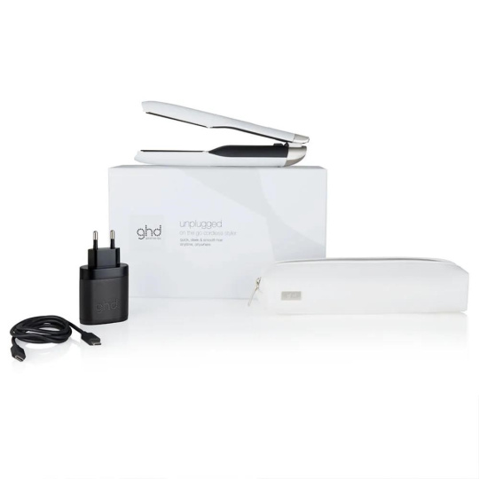 GHD Unplugged žehlička na vlasy, bezdrátová, USB-C, automatické vypnutí, bílá