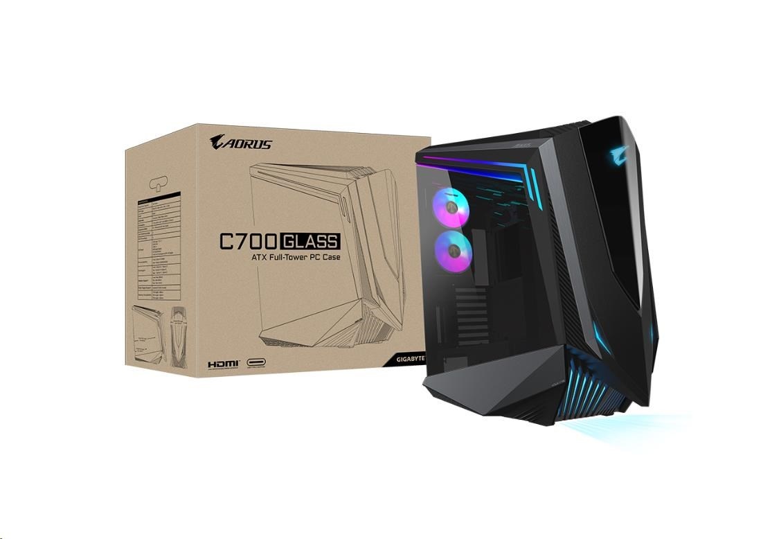 GIGABYTE AORUS C700 GLASS case, bez zdroja, priehľadná bočnica, Full Tower, čierna