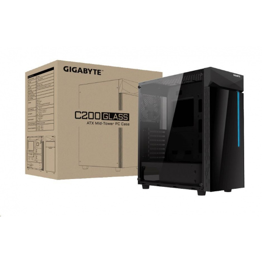 GIGABYTE skrinka GB-C200G, RGB osvetlenie, bez zdroja, priehľadná bočnica, Mid tower