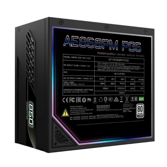 GIGABYTE zdroj AE850PM PG5, 850W, 80+ Platinum, 120mm fan, černá
