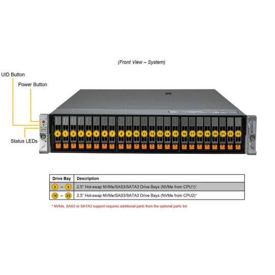 | Úložisko | Až 24x 2.5" NVMe/SATA/SAS hot-swap |