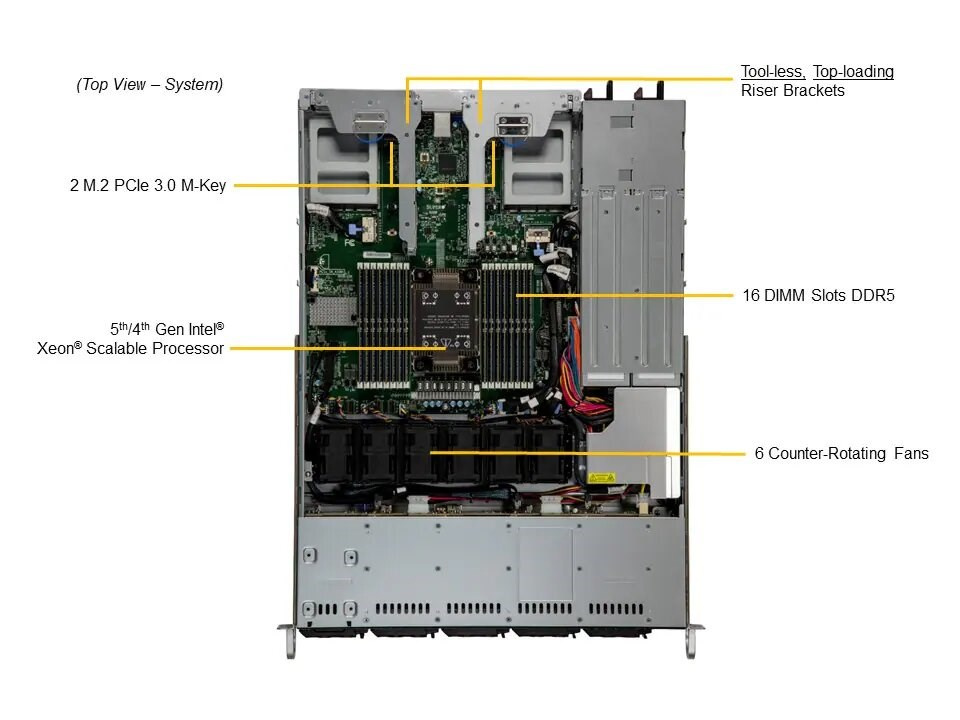 Supermicro SYS-111C-NR je výkonný 1U rackový server optimalizovaný pre databázové aplikácie a podnikovén výpočty. Tento systém využíva procesory Intel Xeon Scalable 4. generácie a podporuje vysokorýchlostnú DDR5 pamäť, čo zabezpečuje spoľahlivý výkon a škálovateľnosť pre širokú škálu pracovných záťaží.