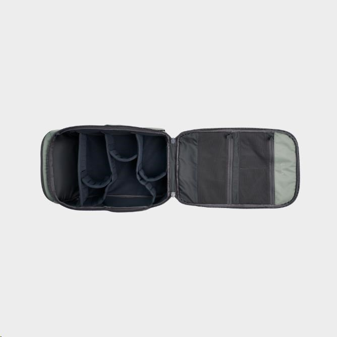 - Obsahuje 1 policu po celej šírke, 2 ľavé a pravé priečinky na fotoaparát, 3 malé priečinky a 1 nastaviteľný popruh na príslušenstvo.