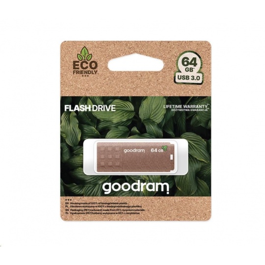 USB flash disk UME Eco Friendly je k dispozícii s kapacitou 32 GB. Použité komponenty umožňujú rýchlosti čítania až 60 MB/s a zápisu až 20 MB/s. Rovnako ako všetky ostatné USB flash disky GOODRAM aj na UME Eco Friendly sa vzťahuje doživotná záruka výrobcu. Najvyššia kvalita = všetky USB Flash disky GOODRAM sú vyrábané s vysoko kvalitnými komponentmi a prechádzajú viackolovými testami kvality, než putujú do maloobchodných predajní. Oddelenie kontroly kvality zabezpečuje, že každý USB je dokonale pripravený na mnoho rokov používania, a preto našim používateľom garantujeme doživotnú záruku.