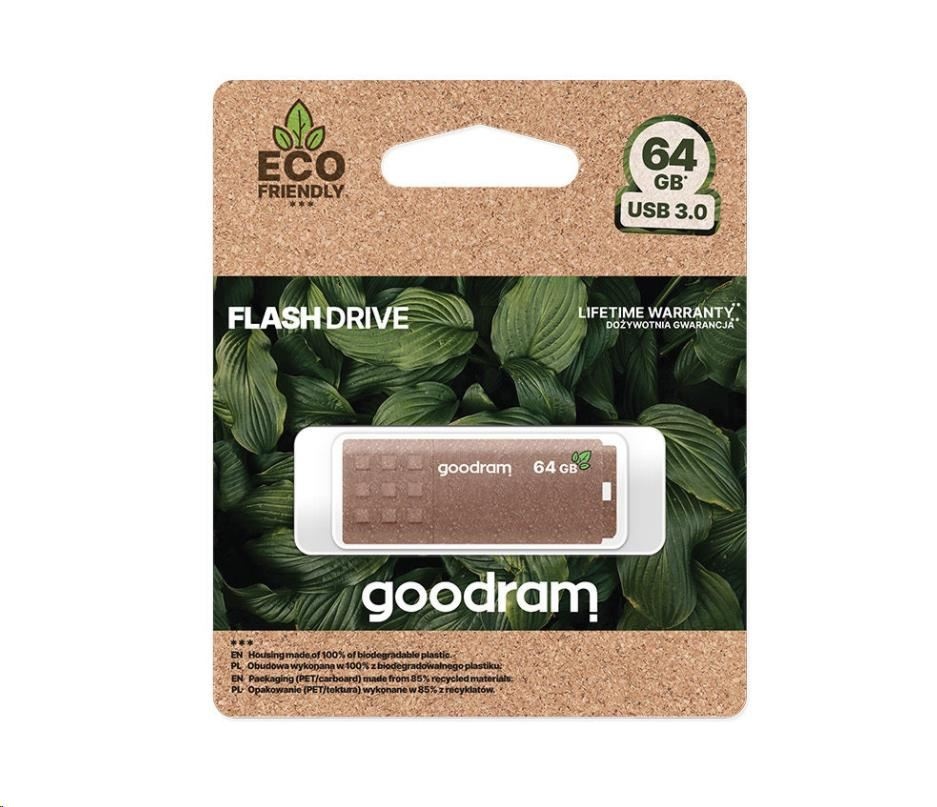 USB flash disk UME Eco Friendly je k dispozícii s kapacitou 32 GB. Použité komponenty umožňujú rýchlosti čítania až 60 MB/s a zápisu až 20 MB/s. Rovnako ako všetky ostatné USB flash disky GOODRAM aj na UME Eco Friendly sa vzťahuje doživotná záruka výrobcu. Najvyššia kvalita = všetky USB Flash disky GOODRAM sú vyrábané s vysoko kvalitnými komponentmi a prechádzajú viackolovými testami kvality, než putujú do maloobchodných predajní. Oddelenie kontroly kvality zabezpečuje, že každý USB je dokonale pripravený na mnoho rokov používania, a preto našim používateľom garantujeme doživotnú záruku.