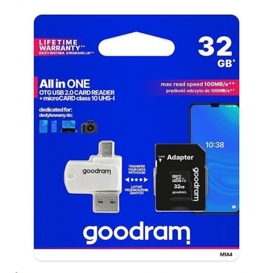 Karta GOODRAM microSDHC 32GB M1A4 All-in-one (R:100/W:10 MB/s), UHS-I Class 10, U1 + adaptér + čítačka kariet OTG