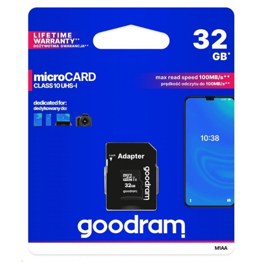 Karta GOODRAM MicroSDHC 32GB M1AA, UHS-I Class 10, U1 + adaptér