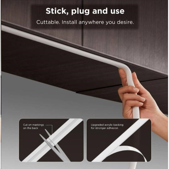 Inštalácia je veľmi jednoduchá. Pásky môžete zastrihnúť podľa značiek na zadnej strane. Novú dĺžku potom môžete kalibrovať v aplikácii, aby ste neprišli o žiadne funkcie. Potom jednoducho prilepíte pásik na čistý a pevný povrch pomocou samolepiacej pásky 3M.