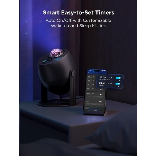 Govee Star Light Projector je tiež vybavený časovačom, ktorý umožňuje nastaviť automatické vypnutie, takže môžete ľahko zaspávať pod hviezdnou oblohou, bez obáv, že projektor zostane zapnutý počas noci. Tento projektor je skvelým doplnkom nielen do spálne, ale aj do obývačky, domácej kancelárie alebo pre akúkoľvek špeciálnu príležitosť, kde chcete vytvoriť unikátnu atmosféru.