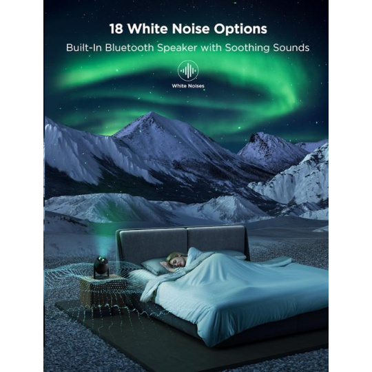 Govee Star Light Projector ponúka 18 prednastavených vzorov bieleho šumu, ktoré vám pomôžu navodiť pokojný pocit a podporiť relaxáciu alebo lepší spánok. Okrem toho môže projektor fungovať aj ako Bluetooth reproduktor, čo vám umožní prehrávať vlastnú hudbu alebo audioknihy priamo zo zariadenia. Či už preferujete relaxáciu pri bielom šume alebo chcete, tento projektor vám poskytne všestranné zvukové možnosti pre každú situáciu.