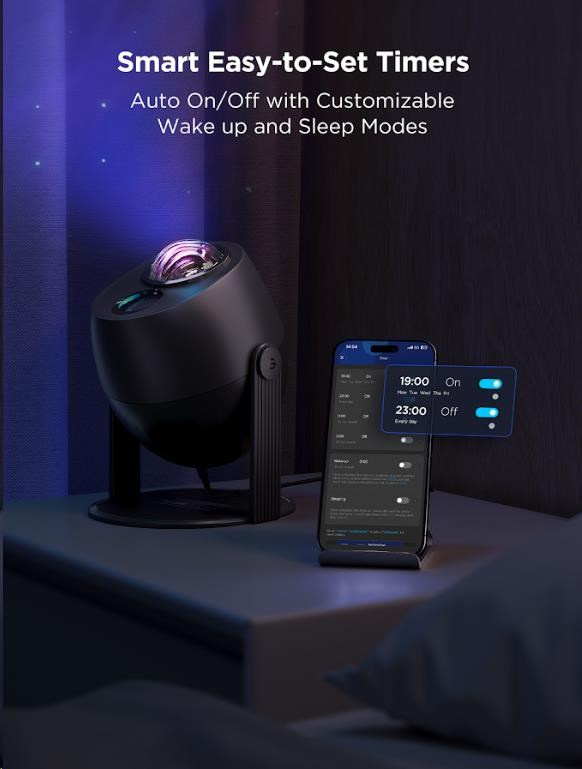 Govee Star Light Projector je tiež vybavený časovačom, ktorý umožňuje nastaviť automatické vypnutie, takže môžete ľahko zaspávať pod hviezdnou oblohou, bez obáv, že projektor zostane zapnutý počas noci. Tento projektor je skvelým doplnkom nielen do spálne, ale aj do obývačky, domácej kancelárie alebo pre akúkoľvek špeciálnu príležitosť, kde chcete vytvoriť unikátnu atmosféru.