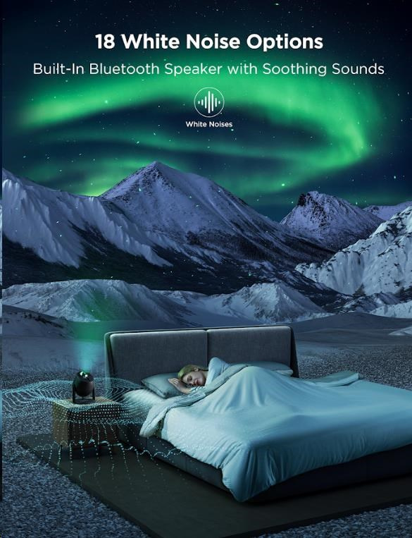 Govee Star Light Projector ponúka 18 prednastavených vzorov bieleho šumu, ktoré vám pomôžu navodiť pokojný pocit a podporiť relaxáciu alebo lepší spánok. Okrem toho môže projektor fungovať aj ako Bluetooth reproduktor, čo vám umožní prehrávať vlastnú hudbu alebo audioknihy priamo zo zariadenia. Či už preferujete relaxáciu pri bielom šume alebo chcete, tento projektor vám poskytne všestranné zvukové možnosti pre každú situáciu.