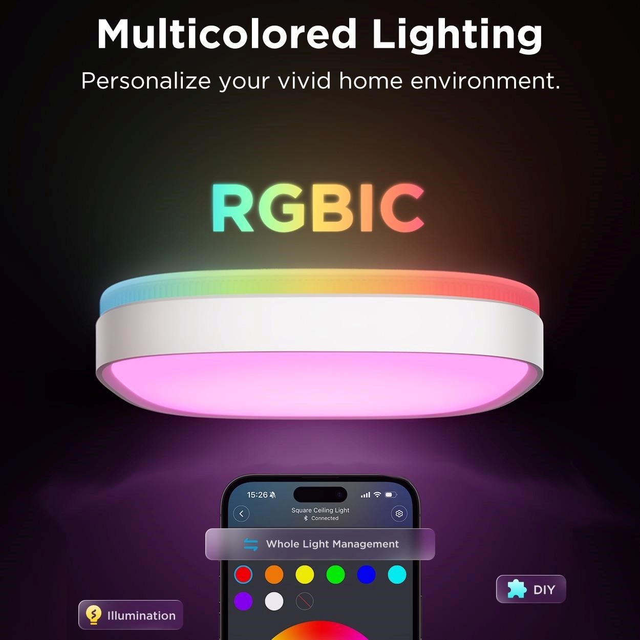 Premeňte svoj priestor pomocou dynamického viacfarebného osvetlenia. Inteligentné stropné svietidlo Govee ponúka živé a prispôsobiteľné osvetlenie, ktoré sa ľahko prispôsobí vašej nálade a štýlu. Vďaka technológii RGBIC+WW môžete súčasne zobraziť 16 miliónov farieb a odtieňov bielej a celé svetlo pohodlne ovládať prostredníctvom intuitívnej mobilnej aplikácie. Či už ide o atmosféru, zábavu alebo každodenné osvetlenie, užite si úplnú slobodu DIY a efekty, ktoré oživia váš domov.