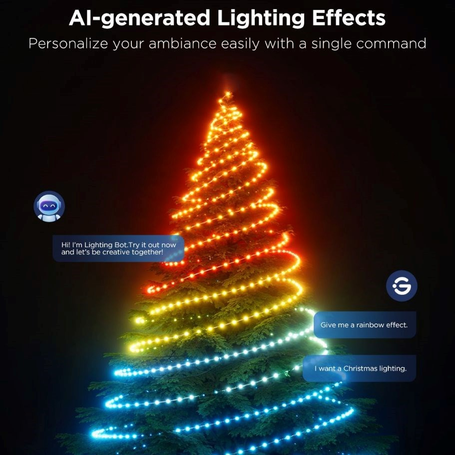 Govee Vianočný svetelný reťazec o dĺžke 20 metrov je ideálnou voľbou pre všetkých, ktorí chcú vytvoriť dokonalú vianočnú atmosféru doma aj vonku. Vďaka svojej dĺžke pokryje tento reťazec väčšie plochy, či už ide o vianočný stromček, plot alebo akúkoľvek inú dekoráciu. Vybavený pokročilou RGBICW technológiou, umožňuje súčasne zobrazovať viac farieb na rôznych častiach reťazca, čo vytvára plynulé prechody a dynamické efekty, ktoré vnesú do vašich sviatočných dekorácií život a čaro. Zásadnou vlastnosťou je možnosť použitia AI pri generovaní vlastných scén pomocou hlasu, textu alebo obrázkov.