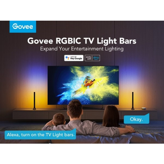 Vytvorte si ideálnu filmovú alebo hernú atmosféru pomocou jednoduchých hlasových príkazov. Svetlá sú kompatibilné s asistentmi Amazon Alexa, Google Assistant a Siri. WiFi modul je zabudovaný v kamere, iba kamera je pripojená k ovládaciemu boxu. Teraz môžete Govee LED svetelné panely zapnúť/vypnúť, upraviť úrovne jasu alebo zmeniť ich farbu pomocou hlasových príkazov z pohodlia svojej pohovky alebo postele. Ovládať panely je možné aj cez ovládací box alebo cez aplikáciu vo vašom smartfóne/tablete.