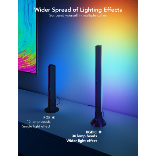 Vylepšite svoje bývanie a zážitky pri sledovaní filmov, hraní hier a počúvaní hudby so šikovnými svetelnými panelmi od Govee. Tieto panely zdvihnú kvalitu vášho televízneho zážitku na novú úroveň. Môžete ich ovládať hlasom prostredníctvom Siri, Amazon Alexa alebo Google Assistant, pomocou mobilnej aplikácie alebo prostredníctvom ovládacieho boxu. Vďaka univerzálnym držiakom môžete panely kreatívne umiestniť a prispôsobiť svojim potrebám, či už je to na televízii alebo kdekoľvek inde v miestnosti. Navyše k modernému vzhľadu vášho interiéru prispieva farebné osvetlenie, ktoré opticky zväčšuje obraz, chráni vaše oči a má životnosť až 50 000 hodín. Tieto panely sú ideálne pre inštaláciu ako podsvietenie za televíziou s uhlopriečkou od 43 do 75 palcov.