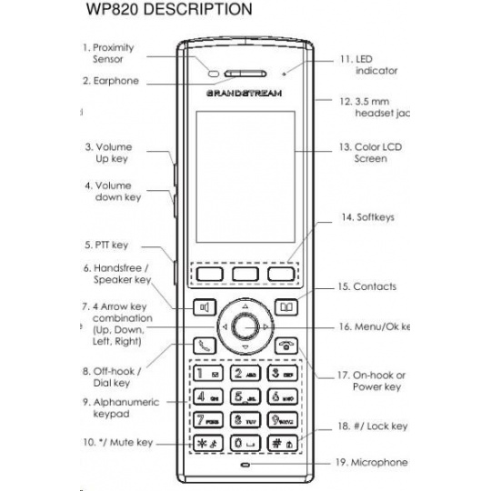 Grandstream WP820 [IP telefón Wi-Fi, 2 linky, 2 účty SIP, 2.4" TFT 240x320, bluetooth, 3.5 mm jack, OS Android]