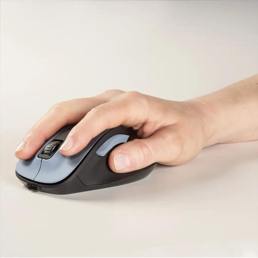 - 6tlačítková bezdrôtová nabíjacia optická myš s presným snímačom a tichými tlačidlami, pre nerušenú prácu s myšou - snímač s technológiou blue wave umožňuje použitie takmer na akomkoľvek povrchu - ergonomický tvar vhodný pre pravákov - bočné tlačidlá pre jednoduché ovládanie funkcie vpred/vzad v prehliadači - DPI tlačidlo na zmenu rozlíšenia (max. 1600 DPI) - integrovaný Li-Ion akumulátor, nabíjanie pomocou USB-C kábla - inteligentné riadenie spotreby energie aktivuje Stand by režim, ak myš nepoužívate - samostatný vypínač pre úsporu energie - výdrž myši je cca 75 dní pri denném používaní - 2,4 GHz technológia pre spoľahlivý a nerušený prenos signálu - Smart Link technológia – jednoduché a rýchle pripojenie - nano USB prijímač môže byť trvale zasunutý v PC - polymerom potiahnuté klzné plochy pre plynulý pohyb myši - pogumované rolovacie koliesko Systémové požiadavky: - operačný systém: Windows 11/10/8/7/Vista/XP, Mac OS 10.10 alebo novší Technické parametre: - pripojenie: USB-A vidlica (2,4 GHz RF) - rozlíšenie: 800/1200/1600 DPI - počet tlačidiel: 6 - rolovacie koliesko - napájanie: Li-Ion akumulátor - nabíjanie: USB-C zásuvka - rozmery: 8,5 x 12 x 4,2 cm - farba: polárna modrá Obsah balenia: - optická bezdrôtová myš MW-500 Recharge - USB prijímač - USB nabíjací kábel USB-A – USB-C - návod na použitie