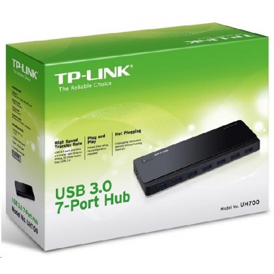 USB rozbočovač UH700 je skvelou voľbou na rozšírenie USB portov počítača na prenos dát, keď potrebujete súčasne pripojiť USB disk, USB myš, tlačiareň alebo iné zariadenia. Port USB 3.0 umožňuje prenosovú rýchlosť až 5 Gbit/s, 10-krát rýchlejšiu než USB 2.0.