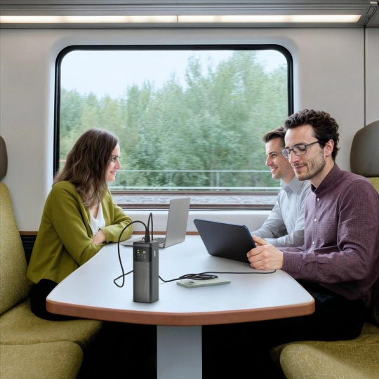 - možnost současného nabíjení 3 zařízení ze 2 USB-C zásuvek a 1 USB-A zásuvky