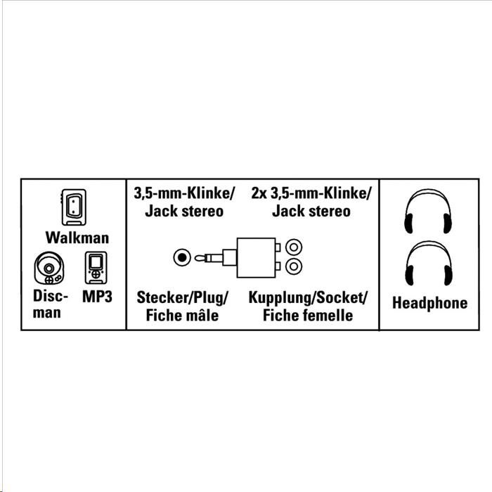 - jack 3,5 mm stereo vidlica - 2x jack 3,5 mm stereo zásuvka - vhodné napr. na pripojenie dvoch párov slúchadiel k jednému zvukovému výstupu..