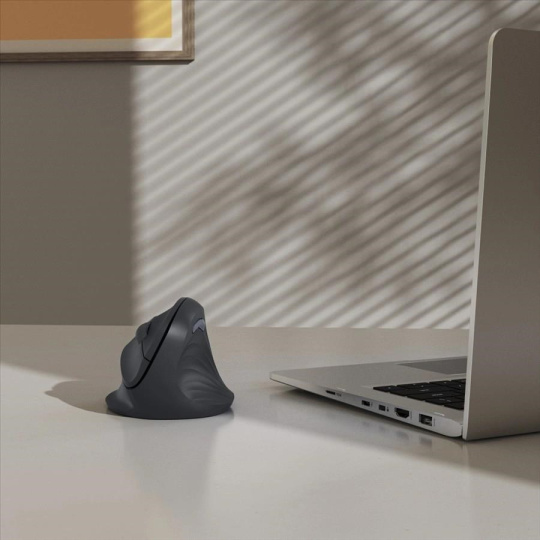 - 7-tlačidlová ergonomická bezdrôtová optická myš - vertikálne prevedenie predchádza presileniu a bolesti ramien a zápästí - ergonomický tvar vhodný pre pravákov - tichá, bez zvukov pri klikaní pre nerušenú prácu - DPI tlačidlo pre zmenu rozlíšenia (1000/1200/1600 DPI) - nano USB prijímač môžete prenášať v tele myšky - aktivácia AI asistenta v systéme tlačidlom - tlačidlá s funkciou späť/vpred v prehliadači - pogumované rolovacie koliesko - polymerové kĺzne plochy - samostatný vypínač pre úsporu energie - 2,4 GHz technológia pre spoľahlivý a nerušený prenos signálu s dosahom až 10 m - telo a tlačidlá sú vyrobené z 85% recyklovaného ABS plastu - balenie je 100% bez plastov Systémové požiadavky: - bežné funkcie: Windows 11/10, Mac OS 11 alebo novšie - tlačidlo Assist: Windows 11 s aplikáciou Microsoft Copilot Technické parametre: - pripojenie: USB-A vidlica (RF 2,4 GHz) - počet tlačidiel: 7 vrátane rolovacieho kolieska - rozlíšenie: 1000/1200/1600 DPI - napájanie: 1x AA batéria - rozmery: 8,6 x 11,5 x 7,1 cm - hmotnosť: 120 g - farba: čierna Obsah balenia: - myš EWM-500R - USB-A prijímač - 1x AA batéria - návod na použitie.