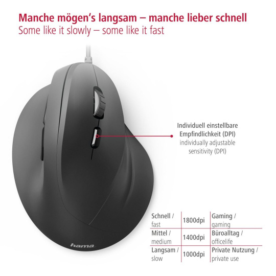 <p>Vertikálna ergonomická káblová myš Hama EMC-500, 6 tlačidiel, čierna</p>