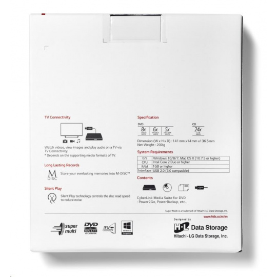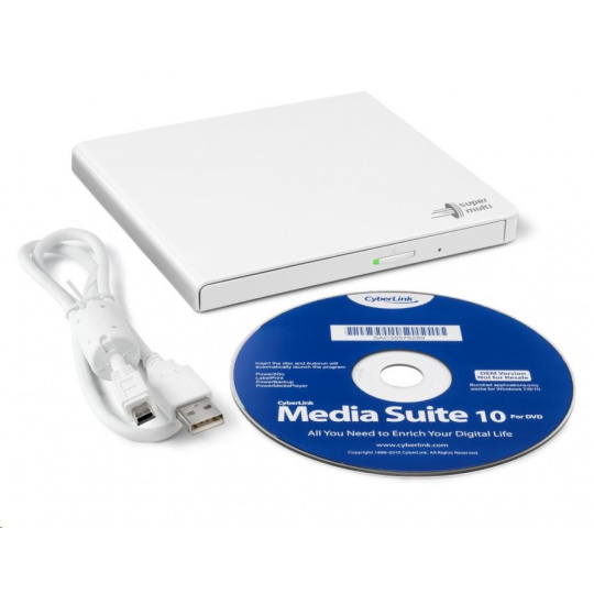 HITACHI LG - externá mechanika DVD-W/CD-RW/DVD±R/±RW/RAM GP57EW40, Slim, biela, krabica+SW
