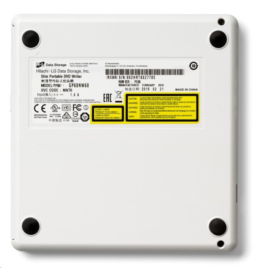 HITACHI LG - externá mechanika DVD-W/CD-RW/DVD±R/±RW/RAM GP60NW60, Slim, biela, krabica+SW