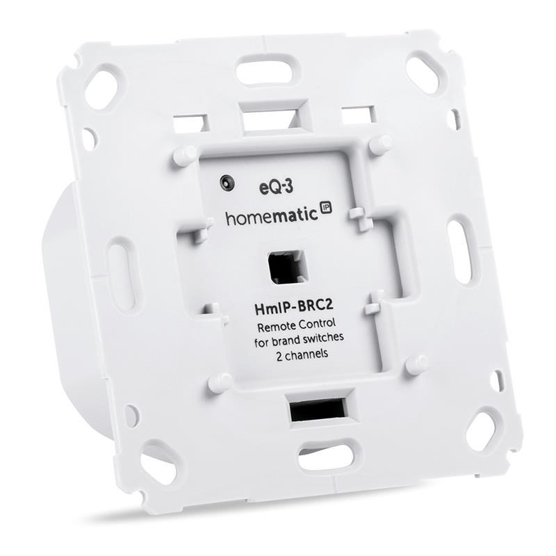- Akčný člen dálkového ovládania (HmIP-BRC2) disponuje na každom zo dvoch tlačidiel kolíčkového spínača dvomi kanálmi, ktoré dokážu rozlíšiť medzi dlhým a krátkym stlačením tlačidla. To umožňuje napríklad zapínať alebo vypínať svetelné zdroje alebo aktivovať či deaktivovať EKO režim vykurovania.