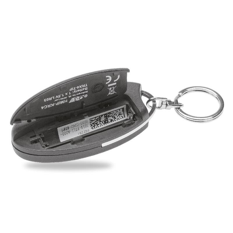 Elegantná bezdrôtová kľúčenka (HmIP-KRCA), umožňujúca jednoduché ovládanie zabezpečovacej časti systému stlačením tlačidla, je súčasťou systému chytré domácnosti Homematic IP a alternatívou k aplikácii Homematic IP.