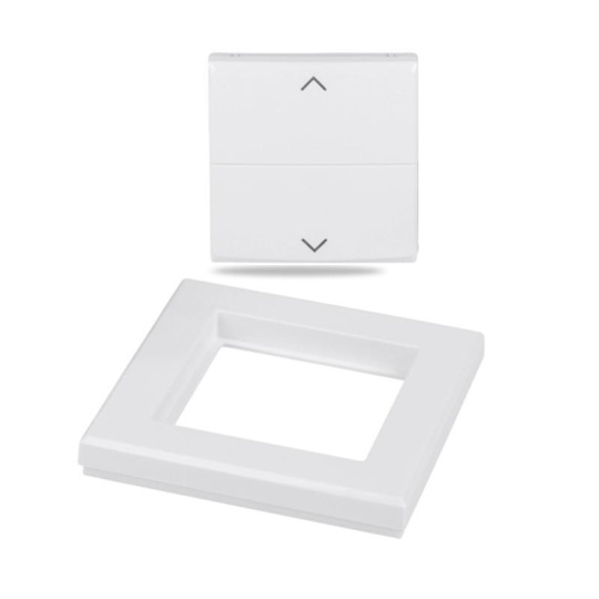 Kryt kolákového vypínača so symbolmi šípok a rámečkom (HmIP-BRA) pre programovateľné bezdrôtové akčné členy (HmIP-BRC2, HmIP-BROLL, HmIP-BBL, HmIP-BSM, HmIP-BDT) o veľkosti 55 mm je súčasťou systému chytrej domácnosti Homematic IP.